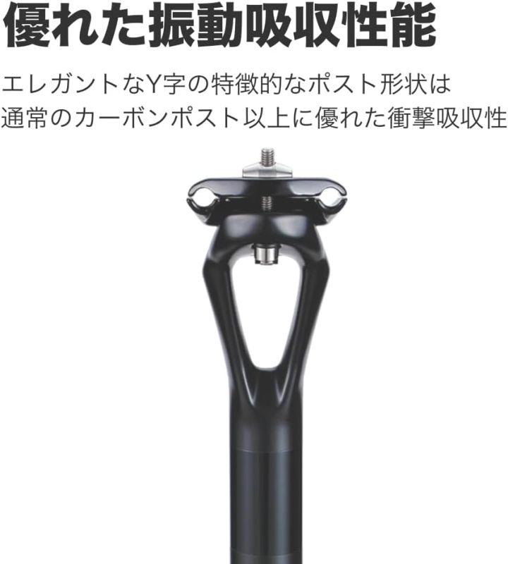 ●エレガントなY字の特徴的なポスト形状は、通常のカーボンポスト以上に優れた衝撃吸収性